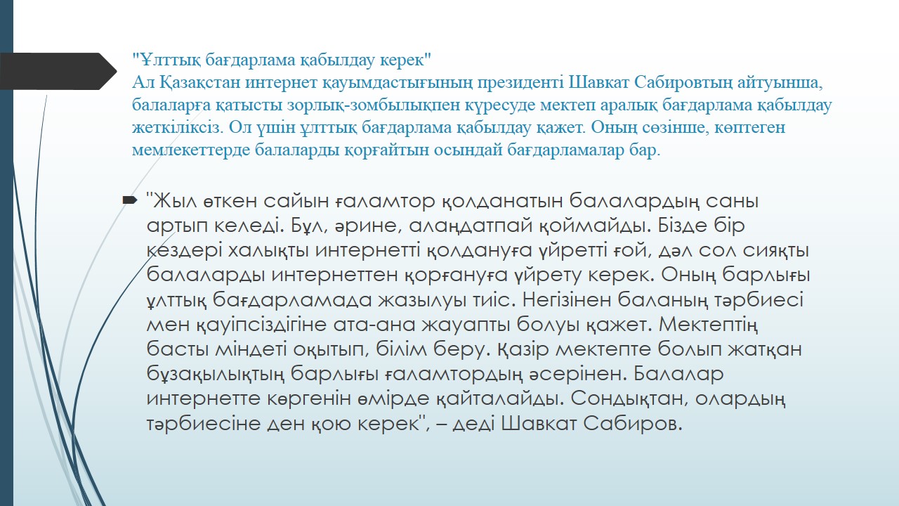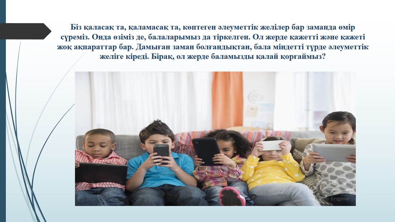 Біз қаласақ та, қаламасақ та, көптеген әлеуметтік желілер бар заманда өмір сүреміз. Онда өзіміз де, балаларымыз да тіркелген. Ол жерде қажетті және қажеті жоқ ақпараттар бар. Дамыған заман болғандықтан, бала міндетті түрде әлеуметтік желіге кіреді. Бірақ, ол жерде баламызды қалай қорғаймыз?