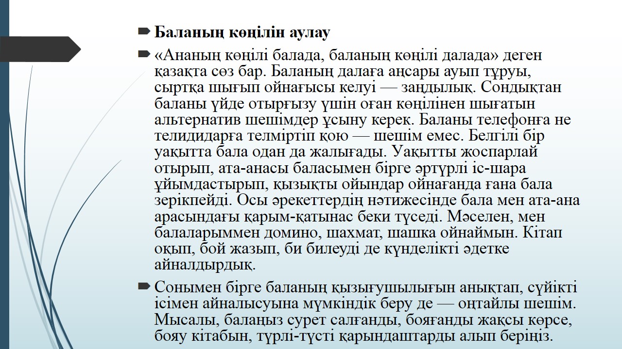• Алғашқы күндері баланы балабақшада толық күнге қалтырмаңыз;