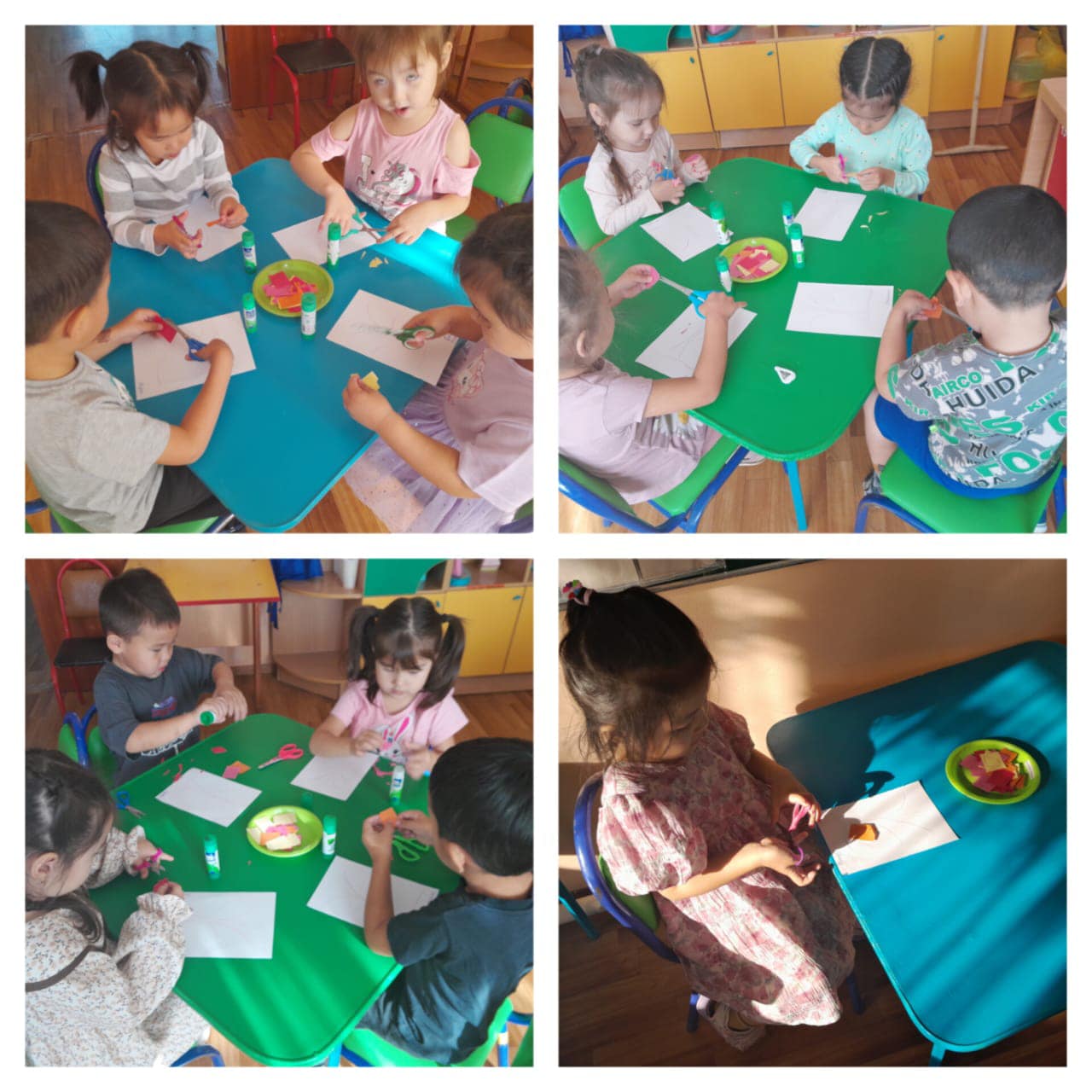 Мақсаты: Жыл мезгілдерін ажырата білуге үйрету. Ұсақ қол моторикасын дамыту, жапсыруға деген қызығушылығын арттыру. Табиғатқа деген сүйіспеншілікке тәрбиелеу.