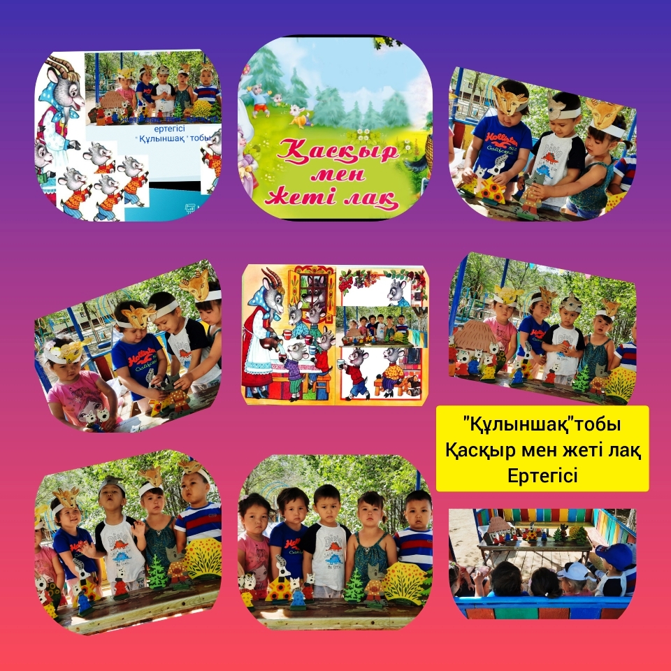 Балаларды ертегі таңдауға және әдеби кейіпкерлердің әрекеттері мен жүріс-тұрыстарына талдау жасауға үйрету мақсатында кіші "Құлыншақ" тобы "Қасқыр мен жеті лақ" ертегісін сахналады