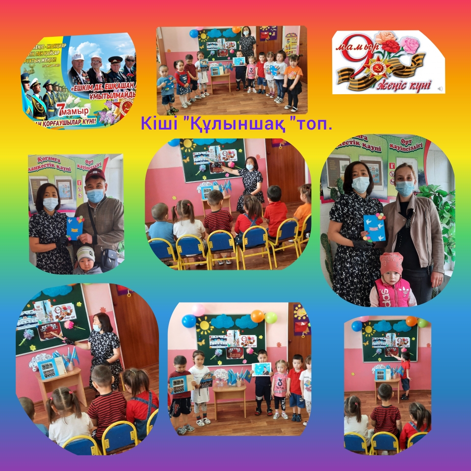 9 мамыр - Жеңіс күніне орай "Ешкім де, ештеңе де ұмытылмайды..." науқаны аясында ортаңғы "Құлпынай" тобында "Ардагерлерге ашық хат сыйлаймыз" атты науқан өтті.