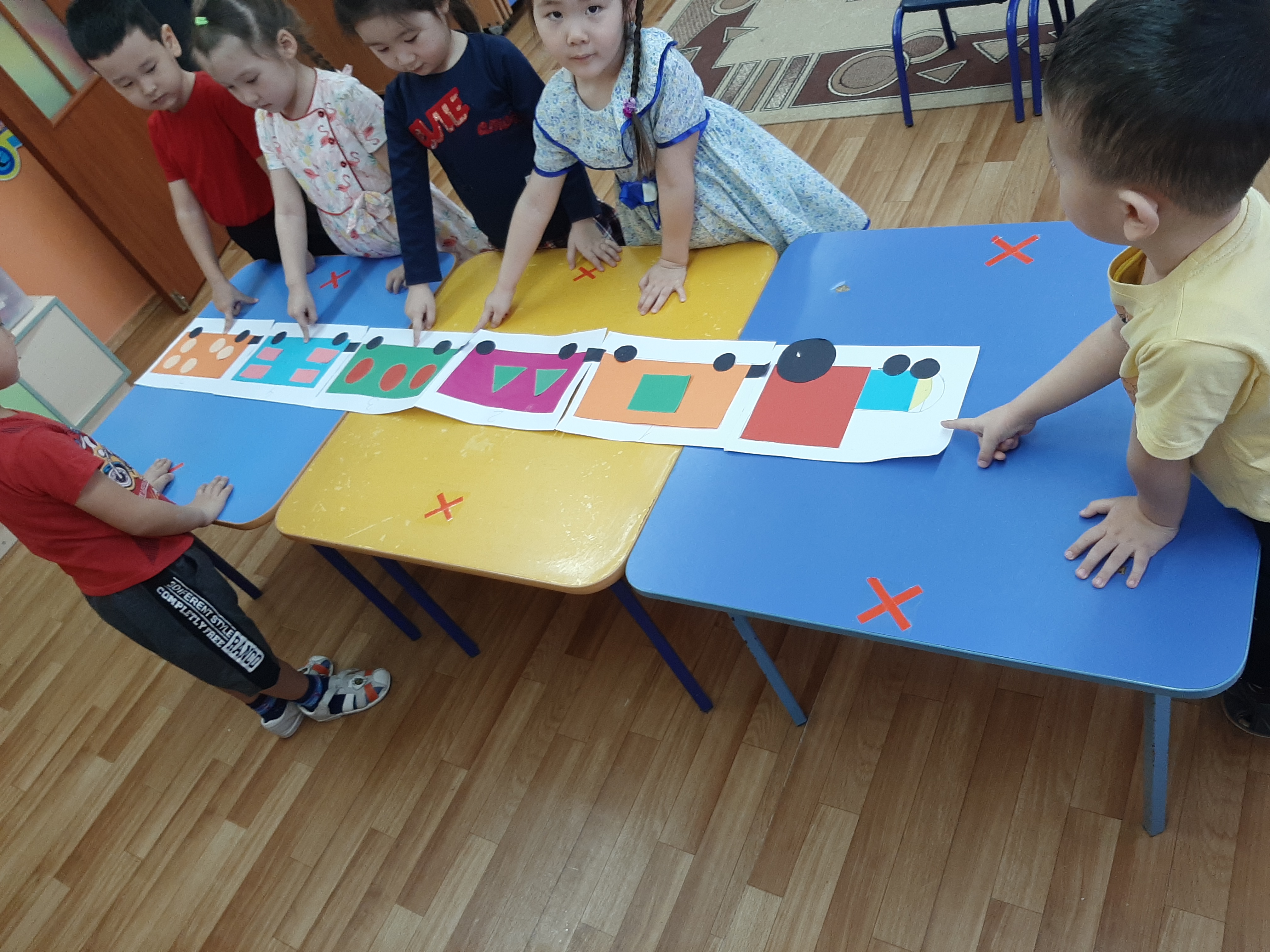 "Геометриялық пішіндер қаласы" ұжымдық жапсыруды бейнелеу өнері мұғалімі О.М.Садыкова өткізді.
