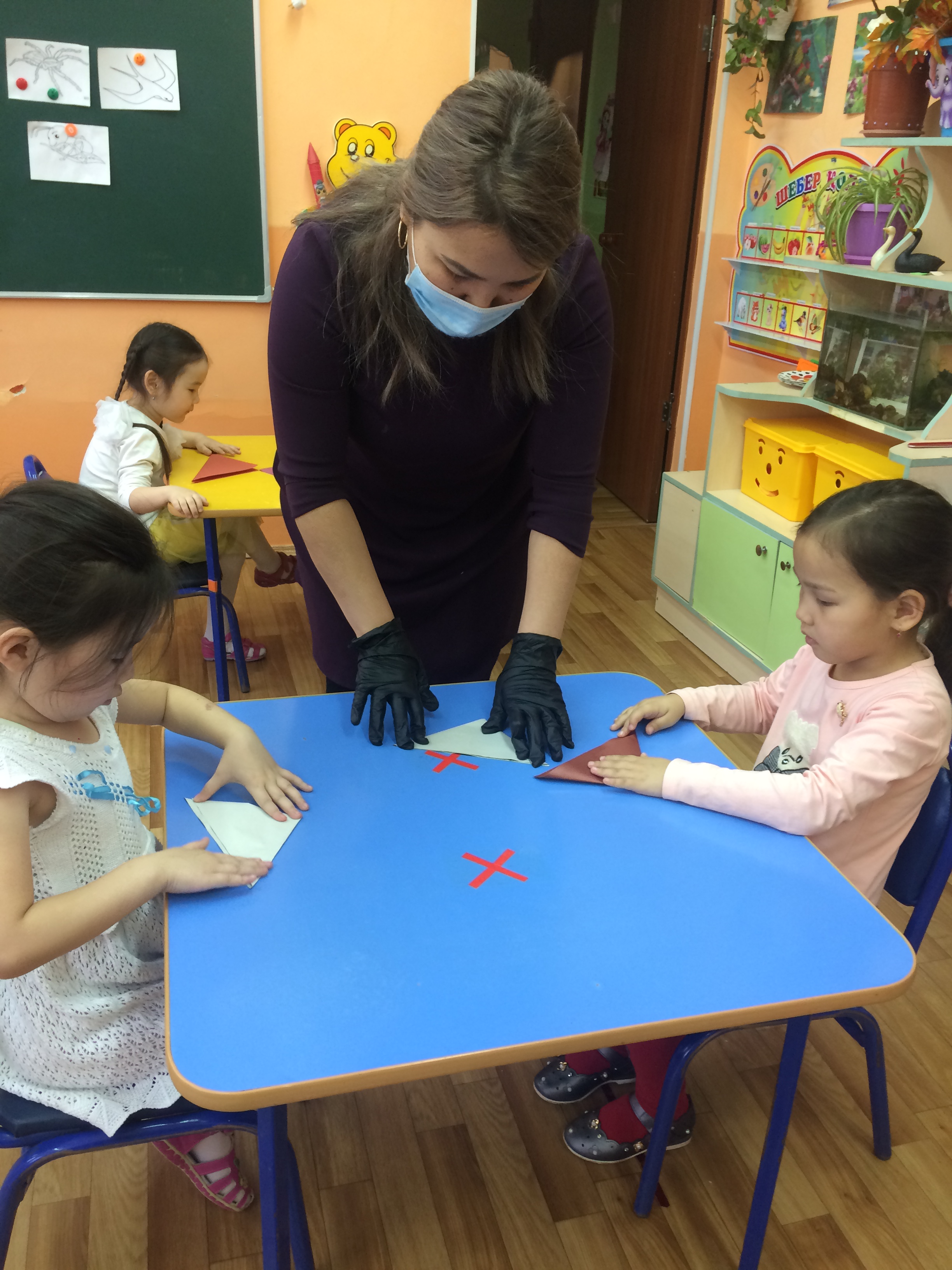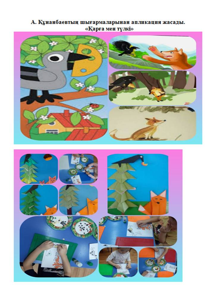 А.Құнанбаевтың шығармаларынан ересек топ балалары аппликация жасады.