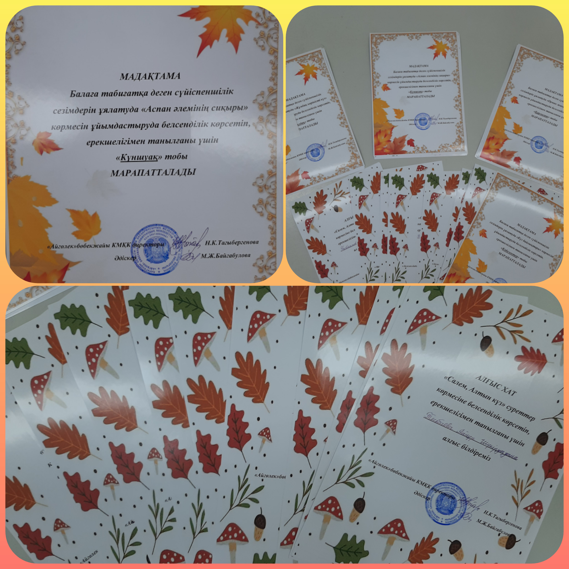 «Сиқырлы күзгі сандық», «Сәлем, алтын күз!» атты көрме жұмыстарыңыз үшін алғысымыз шексіз