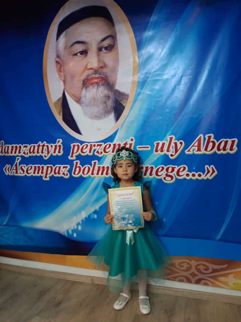 Сайысқа қаламыздың 14 бөбекжайлары қатысты. №7 "Айгөлек" бөбекжайының атынан мектепалды даярлық тобының тәрбиеленушісі Молдабай Мариям қатысты.Мәнерлеп оқу сайысында Мариям Абай атамыздың "Әсемпаз болма әрнеге...." өлеңін нақышына келтіріп айтты. 14 бөбекжайдың ішінен Молдабай Мариям жүлделі "1-ші дәрежелі дипломды" иеленді.