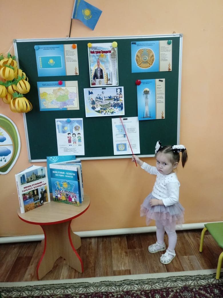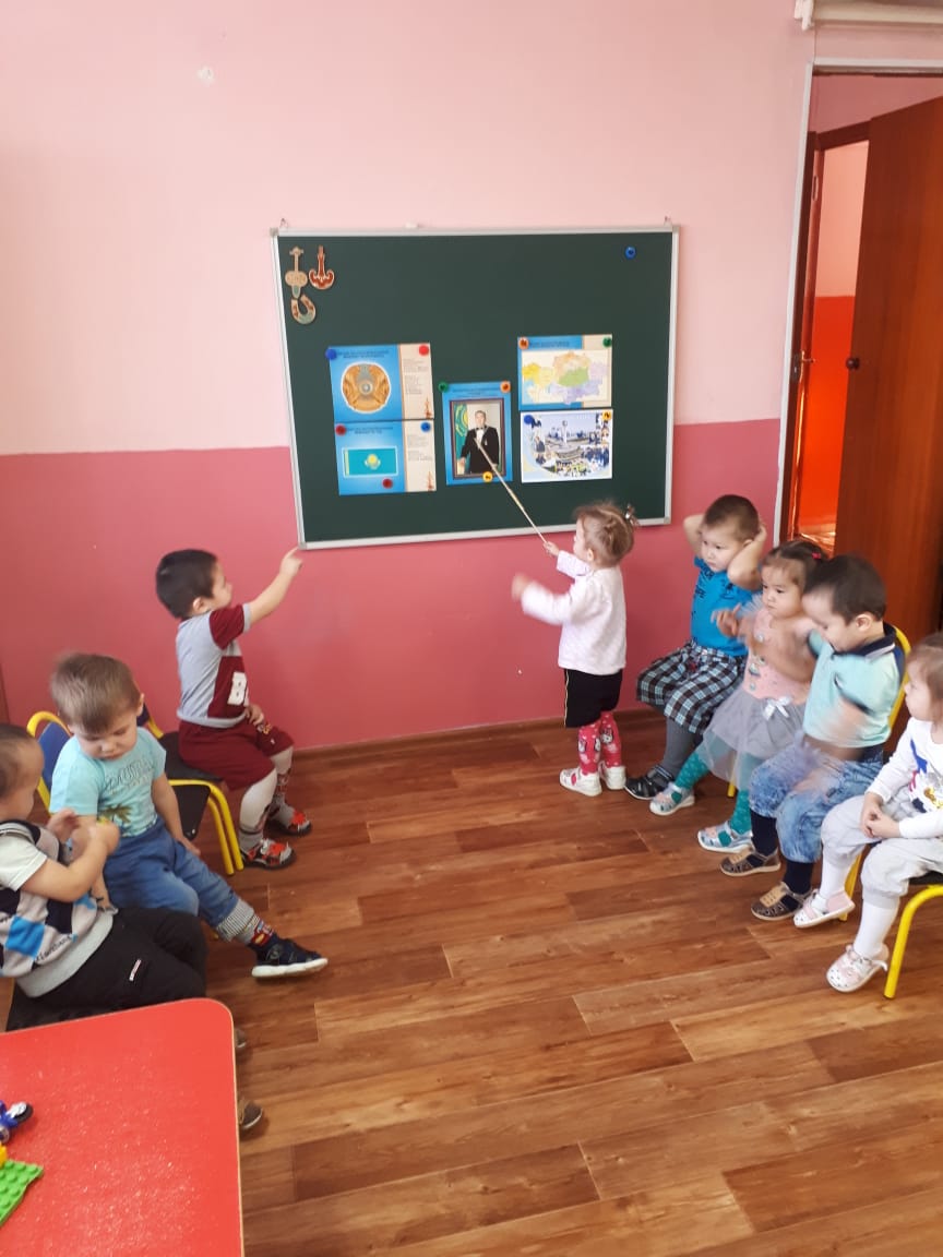2019 жылдың желтоқсан айының 29-да Қазақстан Республикасының Тұңғыш Президенті күніне орай бөбекжайдың кіші топтарында бүлдіршіндермен «Ел тірегі - Елбасы», «Президент ел - тірегі», «Елін сүйген, елін сүйген Елбасы» атты тақырыптарда әңгіме сағаттары өткізілді.