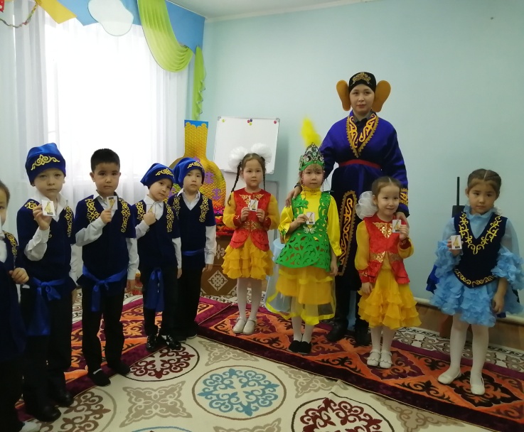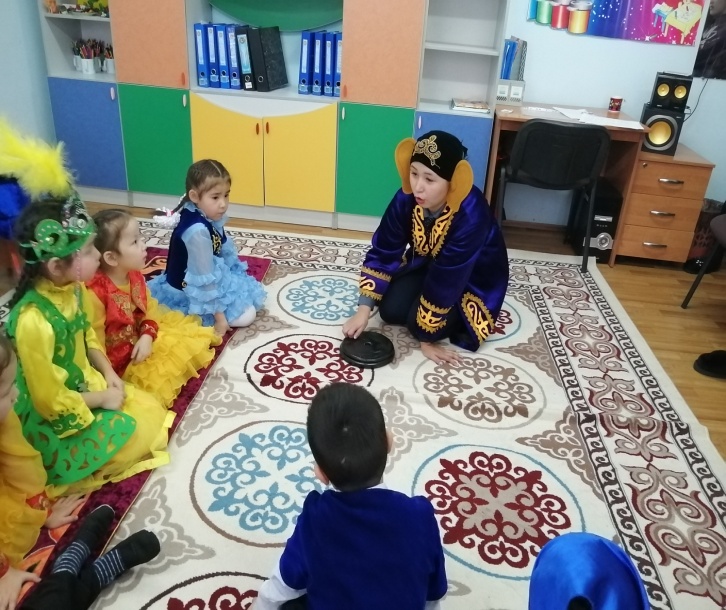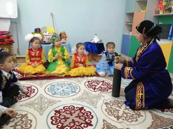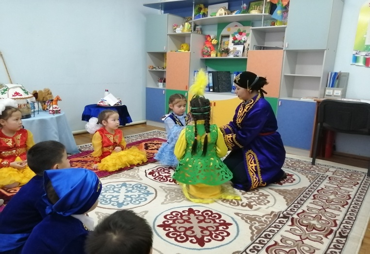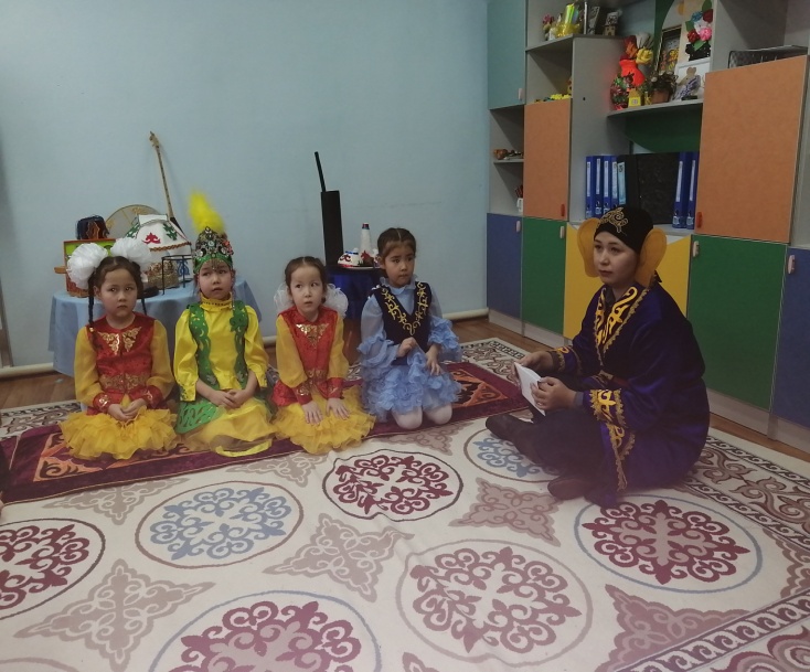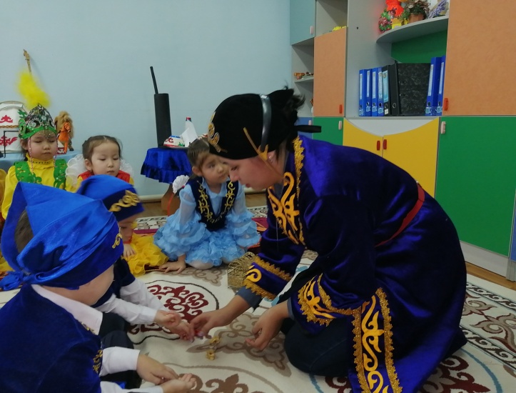 Сақ құлақ балаларға сандықты көрсетіп,ішін ашып тапсырмалар берді. Тапсырмалардың ішінде салт-дәстүрге байланысты тақпақтар, жұмбақтар, мақал-мәтелдер айтты. Сонымен қатар, балаларға Сақ құлақ күбі, диірмен, ошақтың мазмұнын түсіндірді. Іс-шараның соңында балалар « Қара жорға» биімен аяқтады.