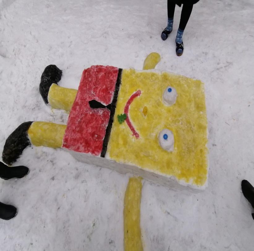 Кейіпкерлер қанық түстермен боялған. Қар қалашығын жасауға ата-аналар және тәрбиешілер ат салысты.