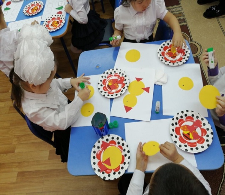 Балаларды осы қойылған мақсаттарға жеткізіп, балалардың көосеткен жұмыстарын бағалап, балаларды іздемпаздыққа тәрбиелеу.Геометриялық пішіндерден белгілі бір заттың бейнесін құрастыра алуды үйренді.Қағазбен жұмыс жасауда, оны көлеміне, пішініне сәйкес кеңістікте дұрыс орналастыра отырып заттарды құрастыра білуді үйреніп, өз бетімен суретті құрастыруға дағдыланды.