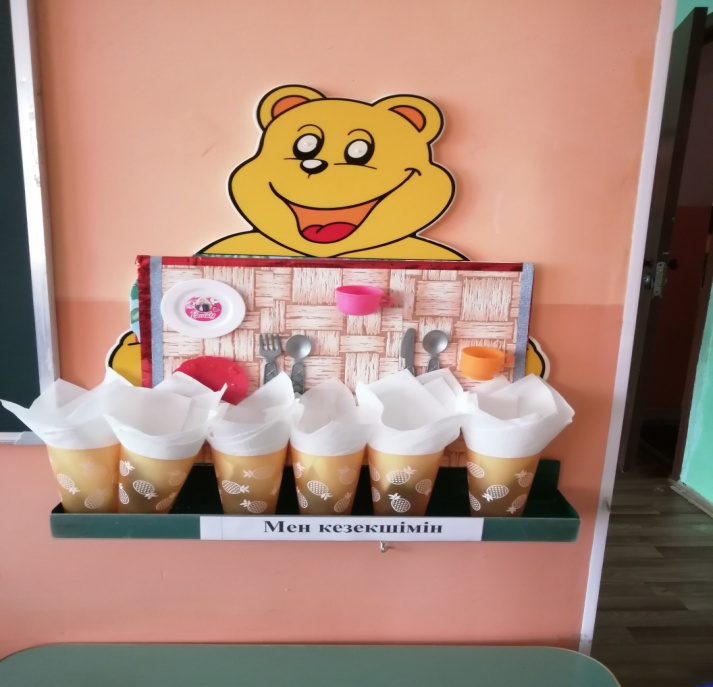 Тексеріс барысында топтар барлық талаптарға байланысты кезекшілік бұрыштарының құрал-саймандарын түгендеп, стендтерін, балалардың күнделікті белгілейтін күнтізбелерін толтырып жақсы дайындықта қарсы алды.