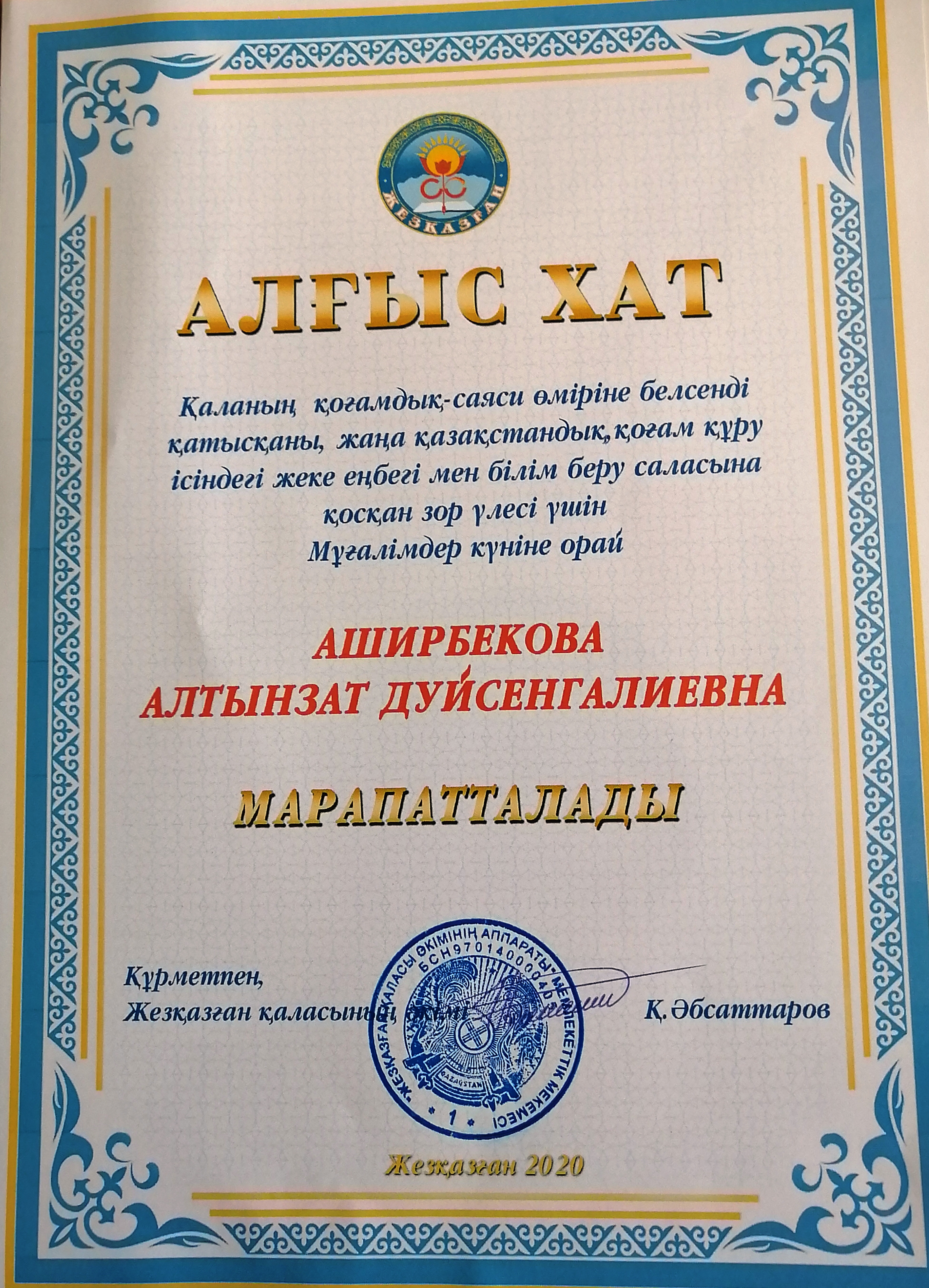 View the embedded image gallery online at: https://zhez-aigolek.edugov.kz/kz/zhanaly-tar/182-alany-o-amdy-sayasi-mirine-belsendilik-tanyt-any-bilim-beru-salasyna-os-an-lesteri-shin-m-alimder-k-ni-merekesine-oraj-pedagogtardy-al-an-marapattary.html#sigFreeId154bc8cb08