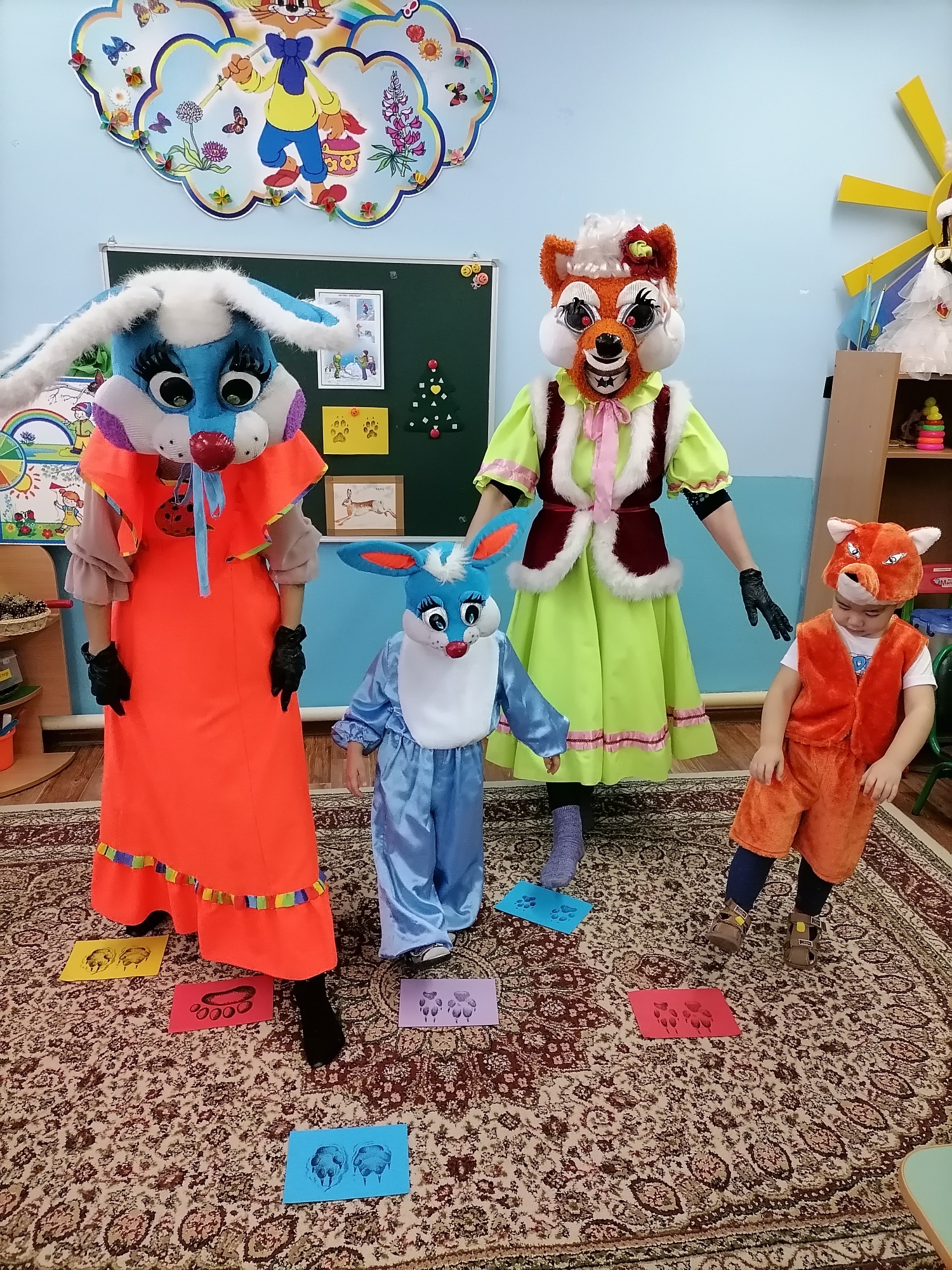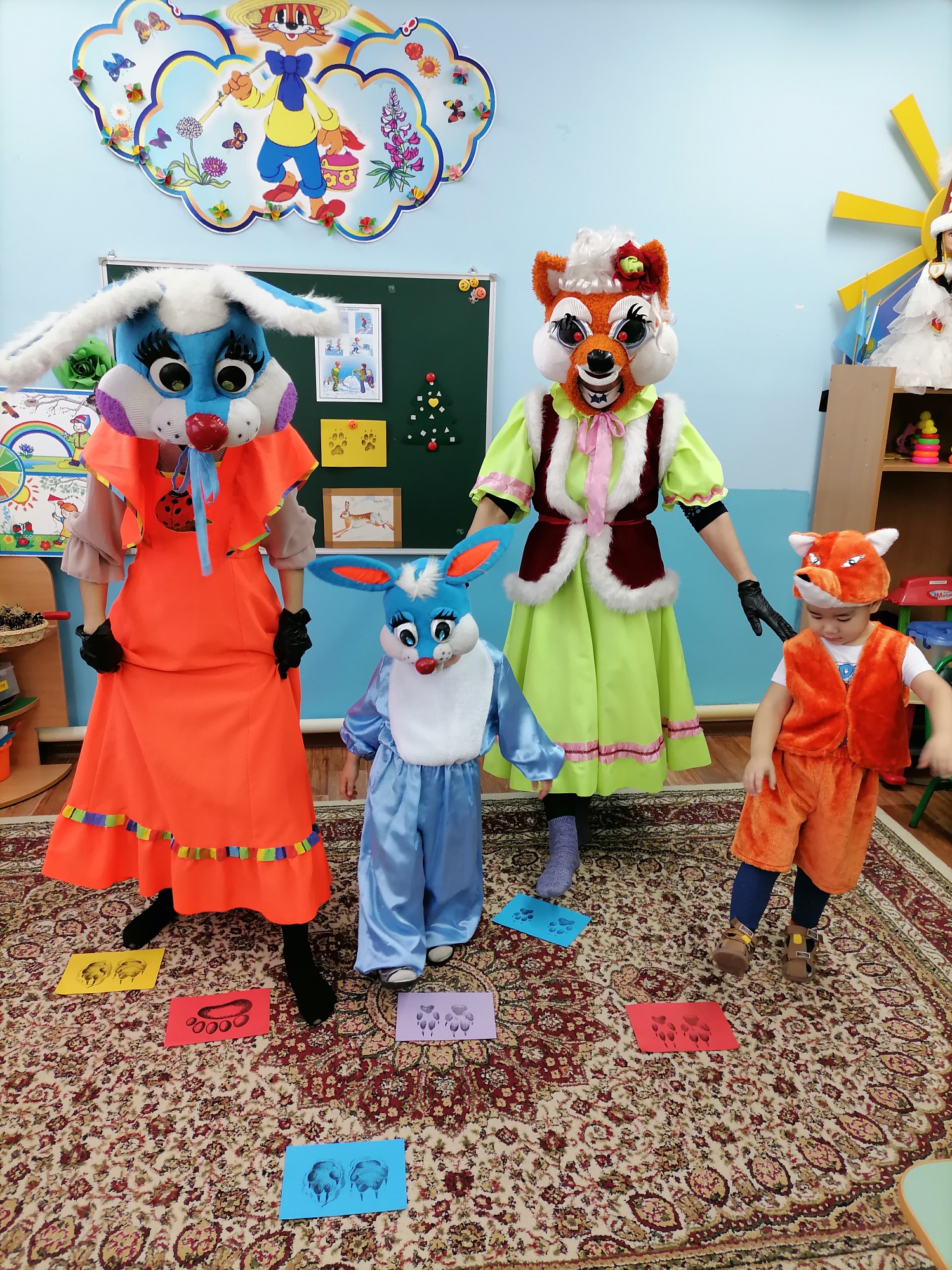 "Көбелектер" тобында Серуендеу кезінде іздеу қызметінің элементтері бар дене шынықтыру және театрландырылған ойын-сауық "Қарда кім із қалдырды?»