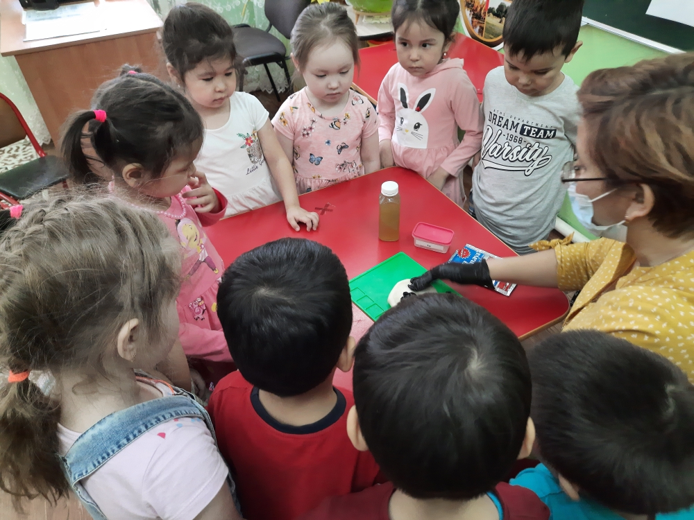 Эксперименттер күні "Кішкентай зерттеушілер" "Жұлдыздар", "Қарлығаш" топтарында "Нан қайдан келді?" Эксперименттік элементтері бар ҰОҚ