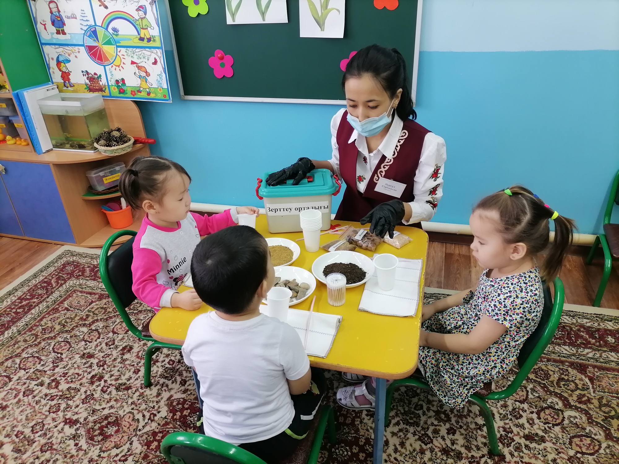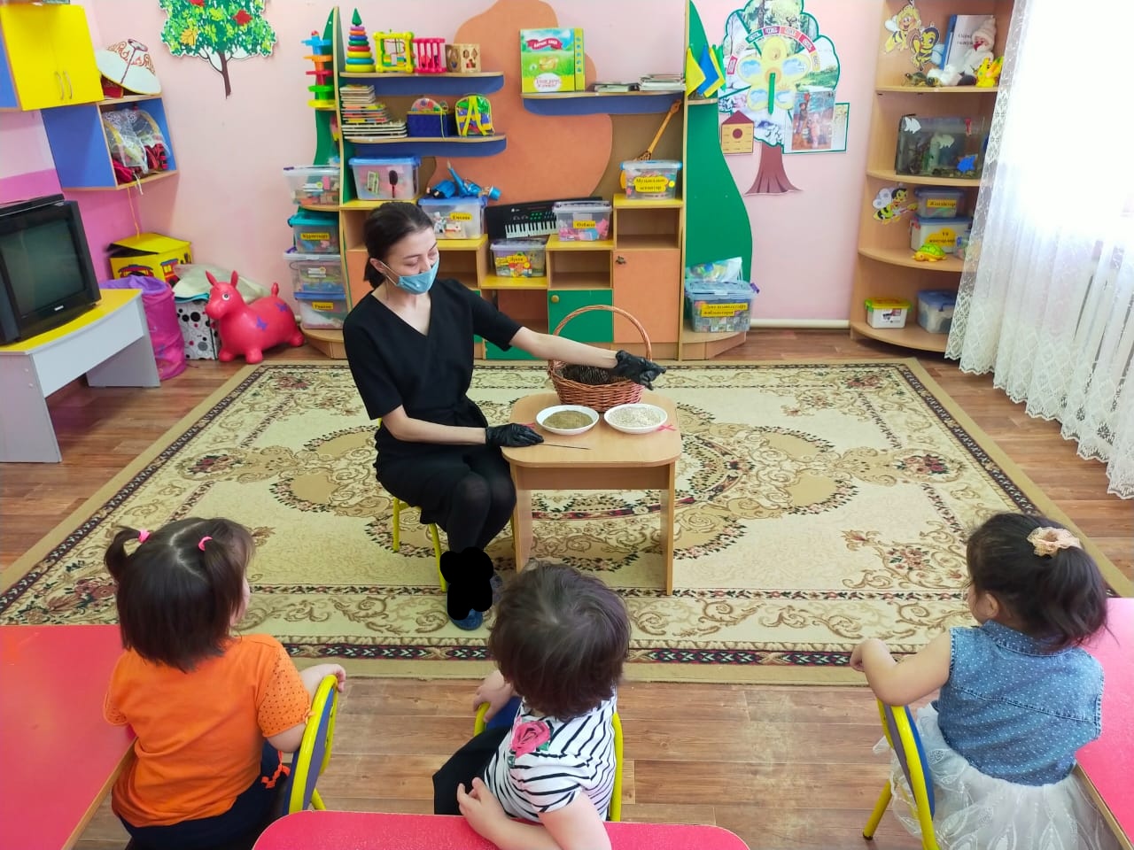 Кіші "Құлыншақ", "Күншуақ", "Көбелектер" топтарында.