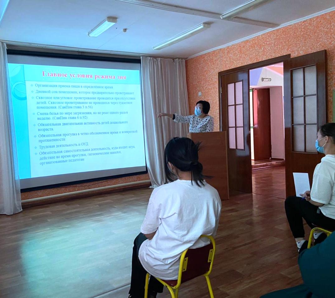 2020-2021 оқу жылының жоспарына сай кезекті өндірістік жиналыс өтті. Күн тәртібінде бөбекжай директоры Б.Т. Кульбаева «Мектепке дейінгі ұйымда күн тәртібін құру ережелері», және әдіскер М.Ж. Байгабулова « «Қатынас» білім беру саласы бойынша мектеп жасына дейінгі балалардың білім игеруі» туралы сөз сөйледі.