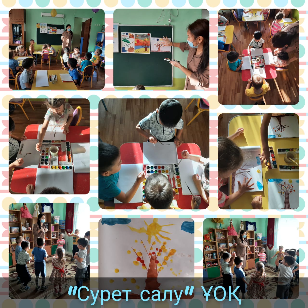 Мақсаты: Қылқаламмен және бояумен жұмыс істеу дағдыларын қалыптастыру.Саусақ арқылы қағаз бетіне дақ түсіруді қалыптастыру. Ұқыпты, тиянақты жұмыс істеуге тәрбиелеу.
