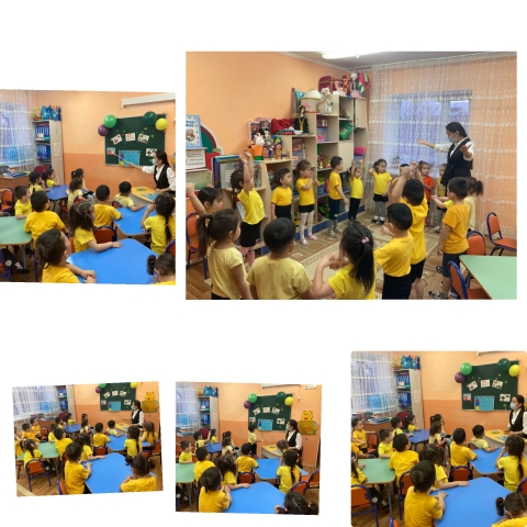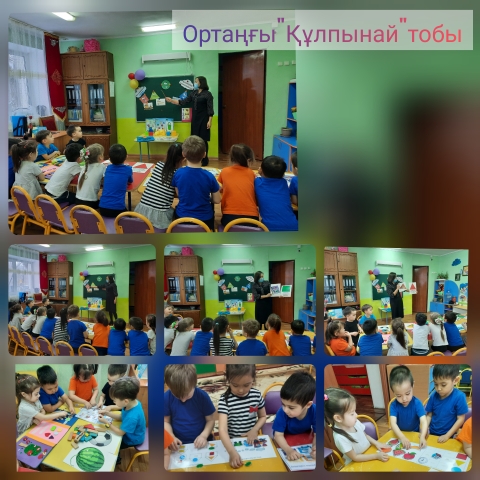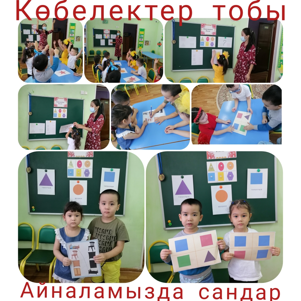 Ортаңғы "Құлпынай", "Күншуак", "Көбелекетер" топтары «Айналамызда пішіндер» Мақсаты: геометриялық пішіндерді ажырата білуге, оларға ұқсас заттарды таба білуге, пішіні ұқсас заттарды топтай білуге, пішіндерден бейне құрастыра білуге, түстерін айта білуге үйрету.