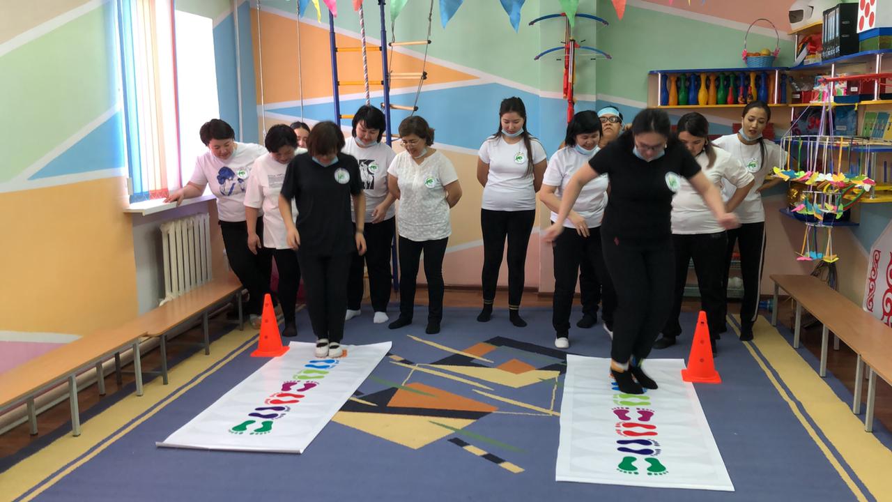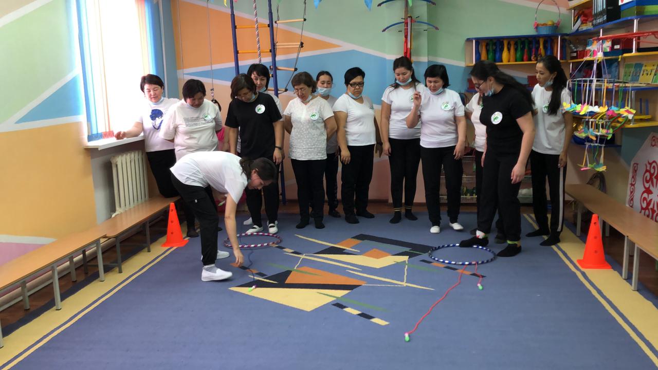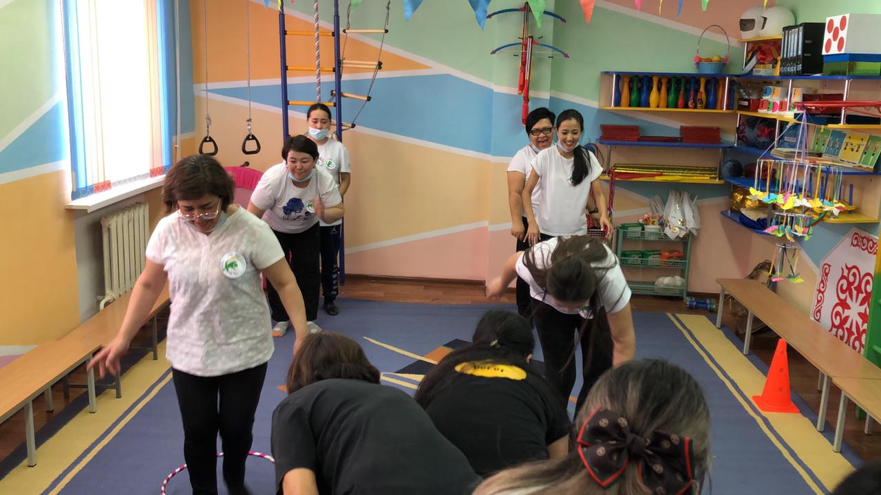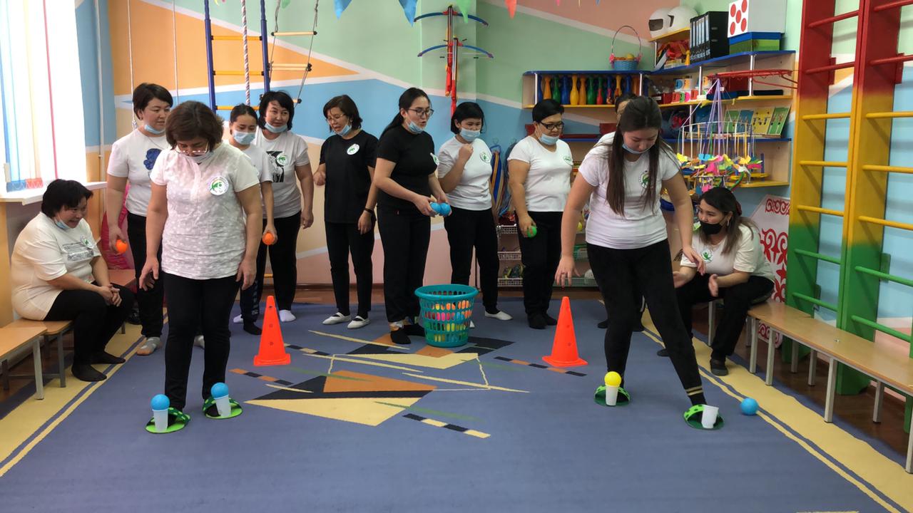 Практикалық бөлім педагогтармен. Ритмика "Қара жорға" Би жетекшісі С.Ө.Сағынбаева мен "Көңілді мәре" Дене шынықтыру нұсқаушысы: А.Е.Ергалиева
