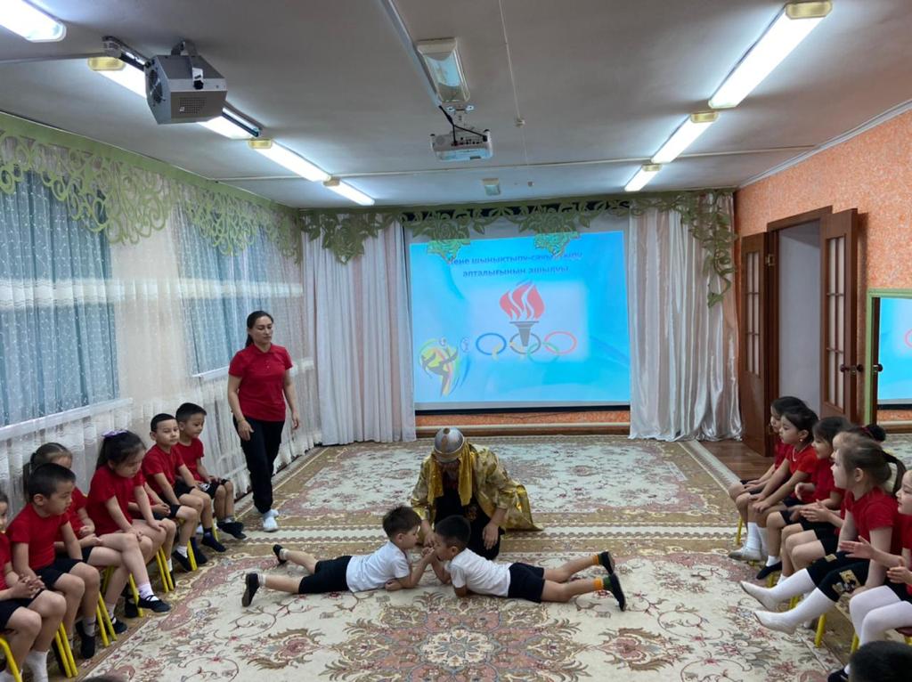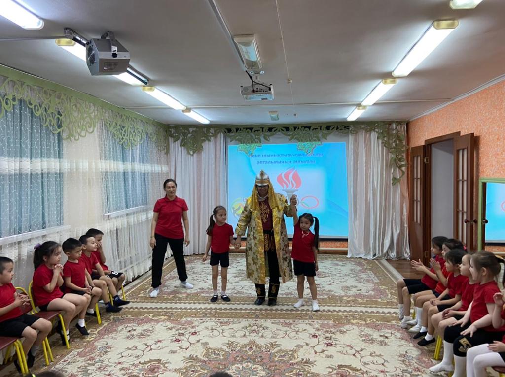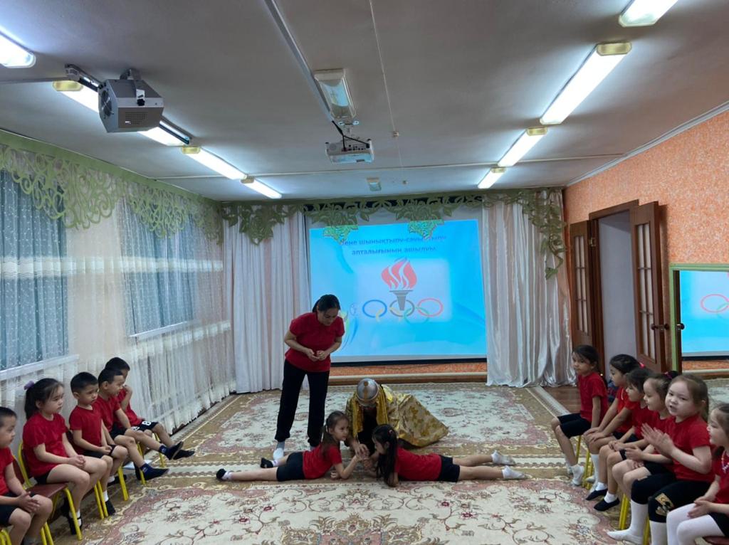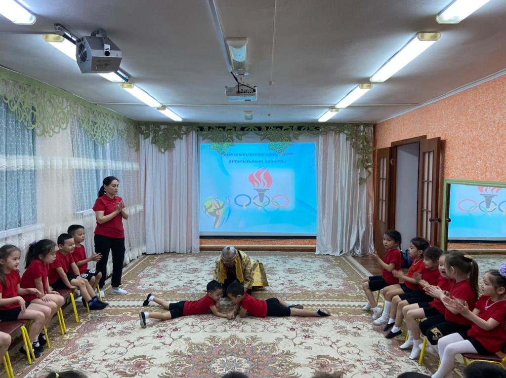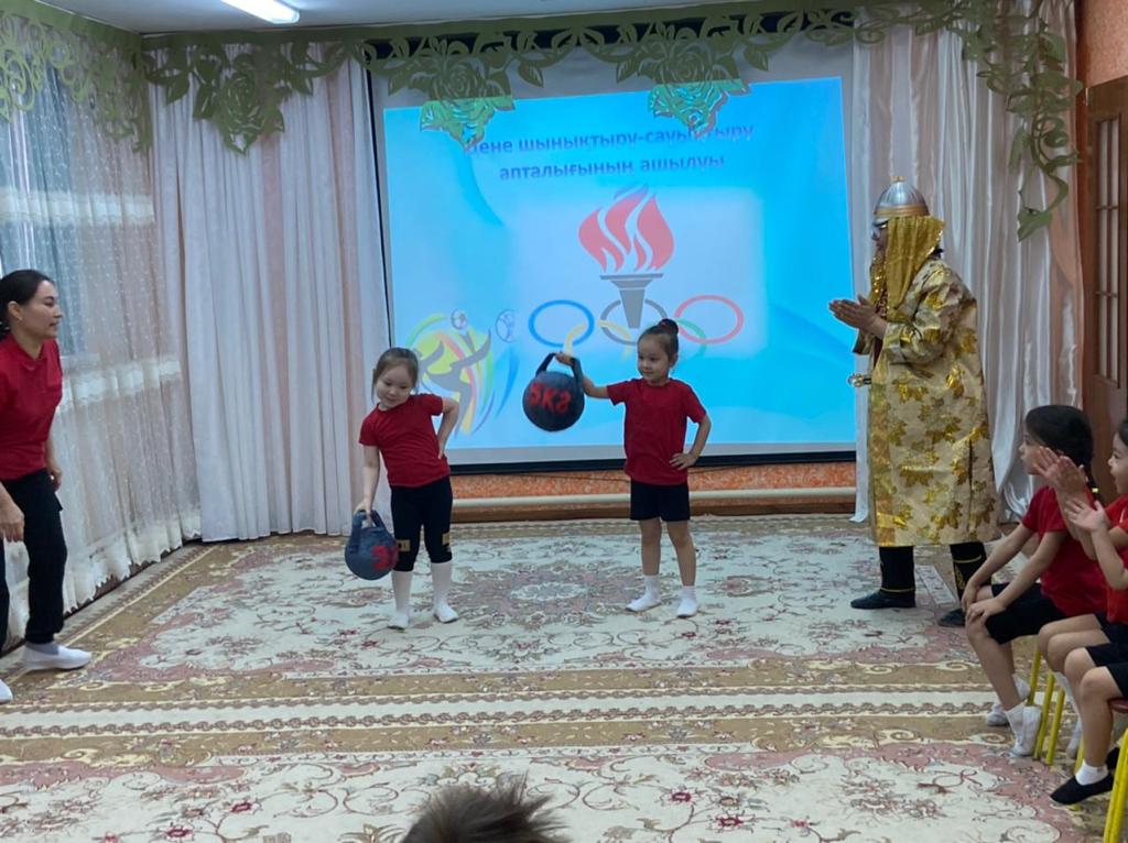 Ересек "Жұлдыздар" тобы. «Қабанбай Батырмен дене шынықтыру-сауықтыру» апталығының ашылуы! 18 сәуір күні өтті. Мақсаты:салауатты өмір салтының басты шарттарының бірі ретінде спорт туралы түсініктерді қалыптастыру; ойлау, танымдық қабілеттерін дамыту: талдау, ойлап табу; моральдық және ерік-жігер қасиеттерін, дұрыс мінез-құлық дағдыларын, қызығушылықты, дене жаттығуларымен жүйелі түрде айналысу қажеттілігіне тәрізді.