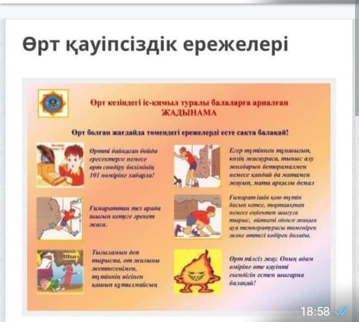 - өрт қауіпсіздігі (тез тұтанғыш және өрт туындауына себеп болатын заттарды балалардан аулақ ұстау)