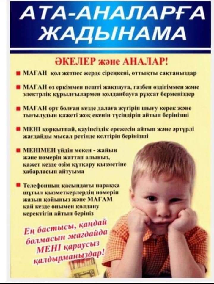 БАЛА ӨМІРІНІҢ ҚАУІПСІЗДІГІН ҮНЕМІ ҚАДАҒАЛАУДА ҰСТАҢЫЗ!!!