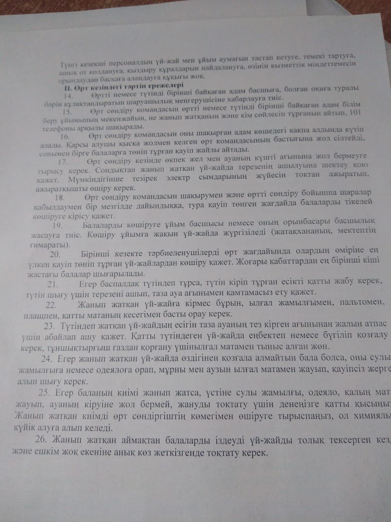 Өрт қауіпсіздігі бойынша педагогтарына арналған нұсқаулық