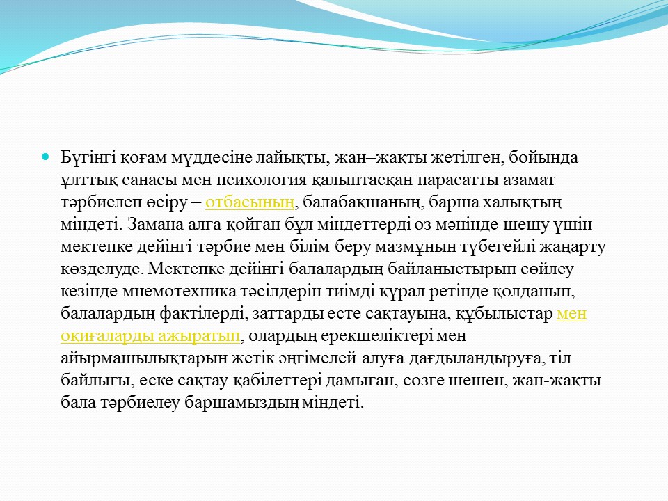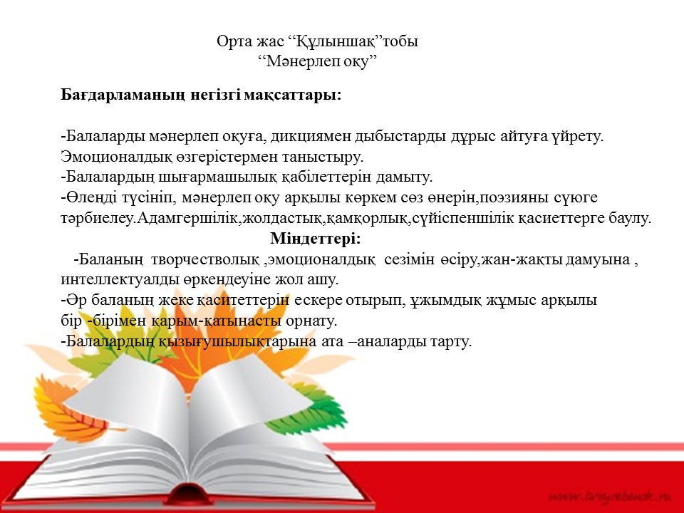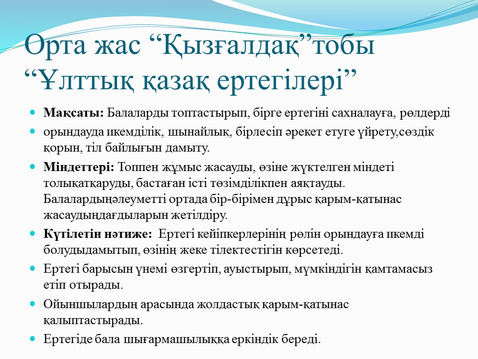 Мақсаты:Бала тәрбиесінде бөбекжай мен отбасы ынтымақтастығын нығайту.Бөбекжай, ата-ана, педагог үштігі болып бірігіп, сапалы білімді, саналы тәрбиелі, салауатты ұрпақ тәрбиелеу.