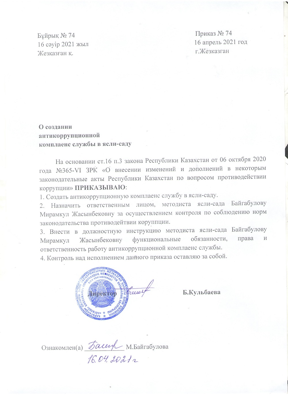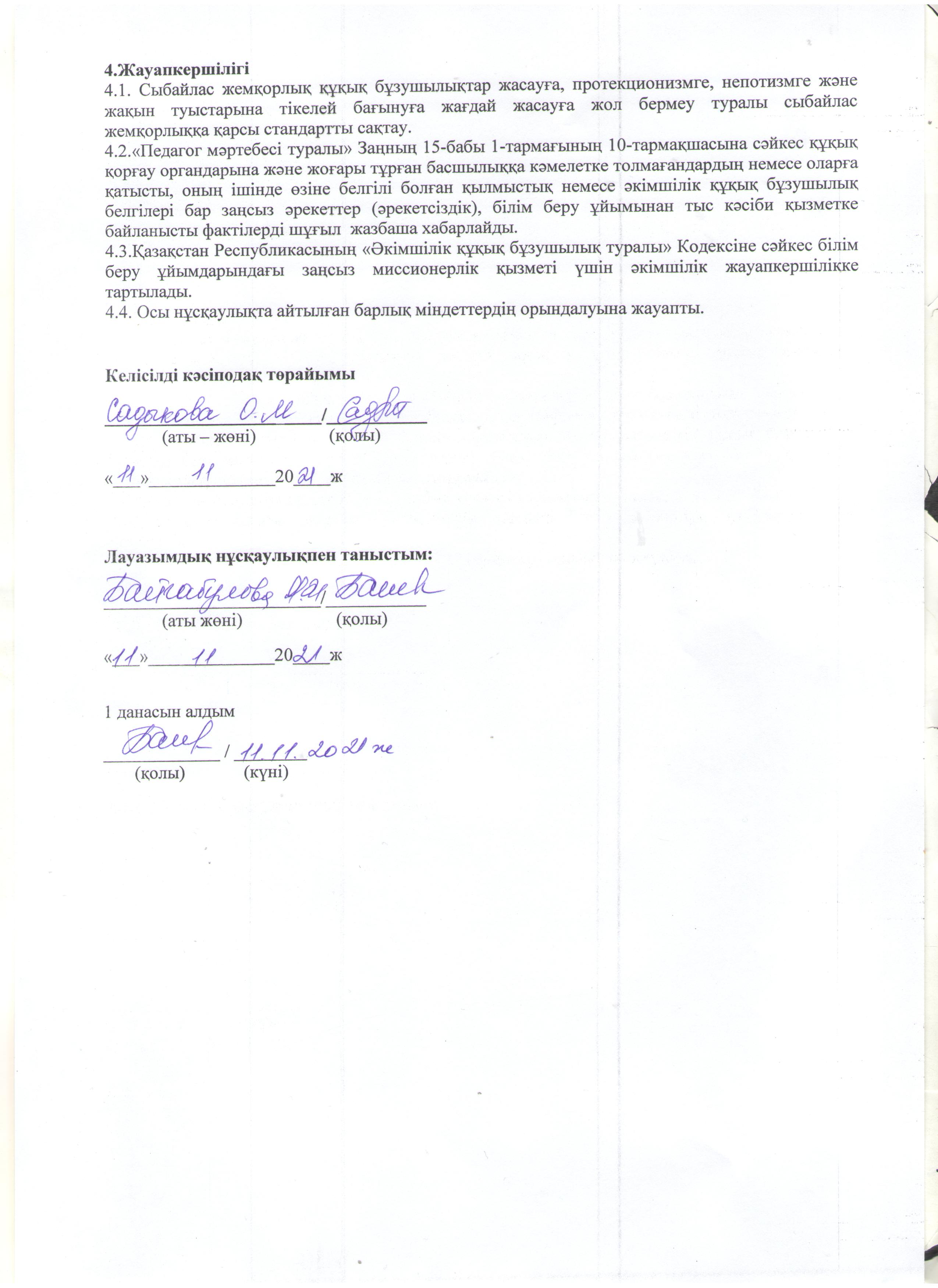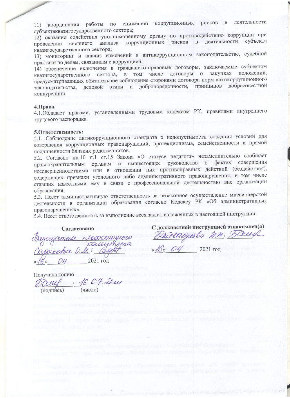 Ответственное лицо за противодействие коррупции: методист Байгабулова М.Ж. Контактные данные ответственного лица: 8(7102) 903548, 8(705) 747-2396